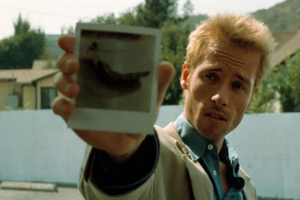 Leonard Shelby leidet an einem Kurzzeitgedächtnisverlust und kann keine neuen Erinnerungen bilden. Entschlossen, den Mörder seiner Frau zu finden, verlässt er sich auf Polaroids, Notizen und Tätowierungen, während die Geschichte in umgekehrter Chronologie erzählt wird und die Wahrheit ungreifbar bleibt.