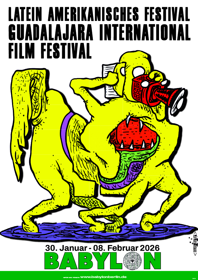 GUADALAJARA @BABYLON30.01. -08.02. The International Film Festival in Guadalajara presents 'FICG comes to Berlin', its first international screening, with a selection of outstanding titles from its recent editions. BABYLON will host this showcase that invites the public to discover new voices and looks of current Mexican cinema.