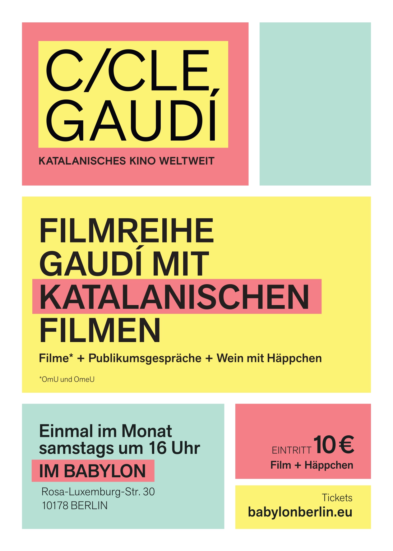 El cinema Babylon presenta el Cicle Gaudí: Katalanische Filme und Häppchen, deu sessions de cinema a l’any per gaudir de la diversitat de la cinematografia catalana. Les pel·lícules, en versió original i subtitulades a l’anglès o alemany, presenten un cinema eclèctic que ha recorregut festivals de tot el món i ha estat premiat internacionalment.